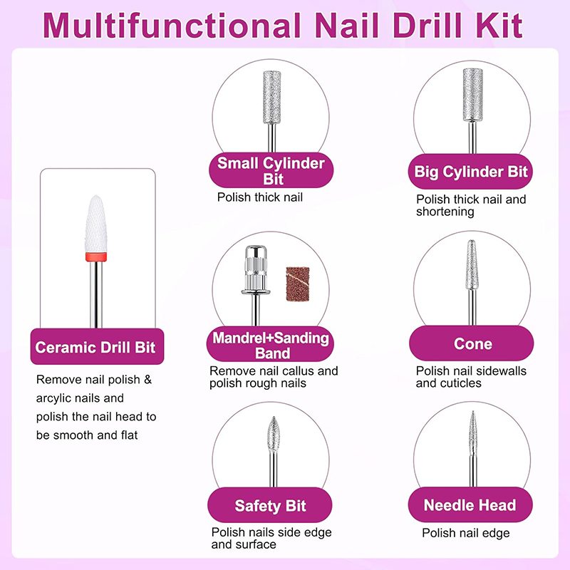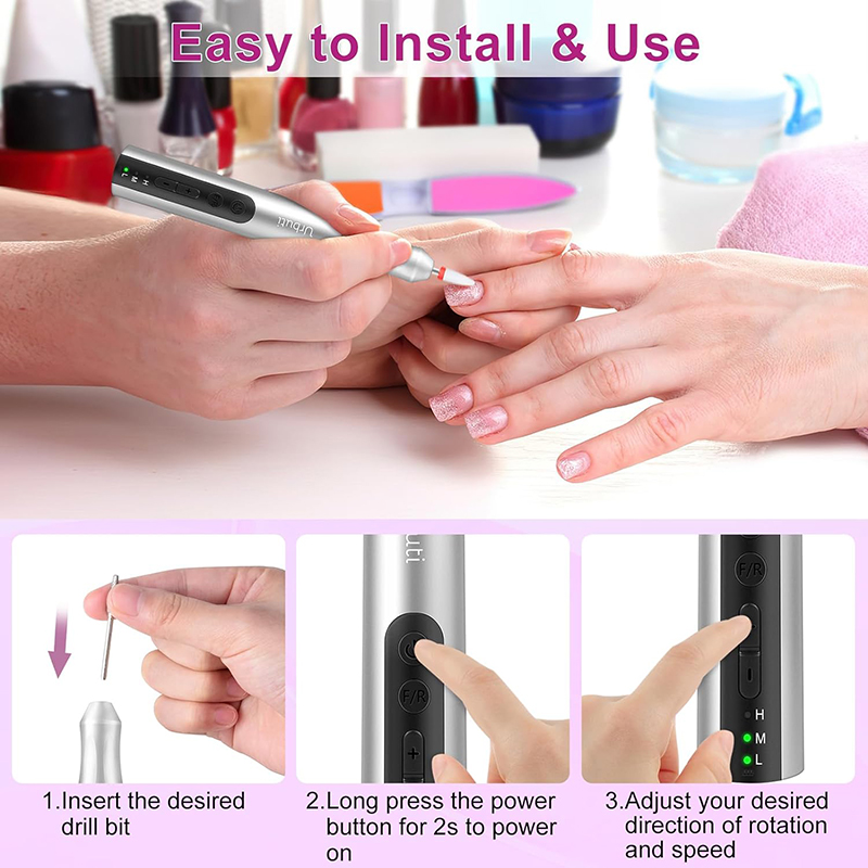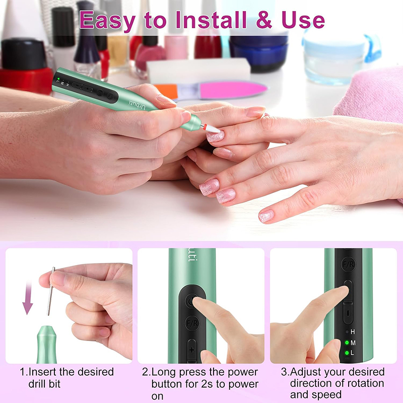 Akkunaulaporasarja tarjoaa useita hiomahihnoja ja erilaisia poranteriä, joista voit valita oikean tyyppisille kynsille. Kun haluat vaihtaa poran, vedä se ulos, vaihda se haluttuun poraan ja käytä sitä painamalla virtapainiketta, joten se on ihanteellinen lahja naisystävillesi. Jos sinulla on kysyttävää tästä tuotteesta, ota rohkeasti yhteyttä.