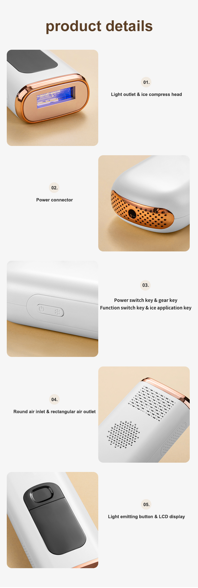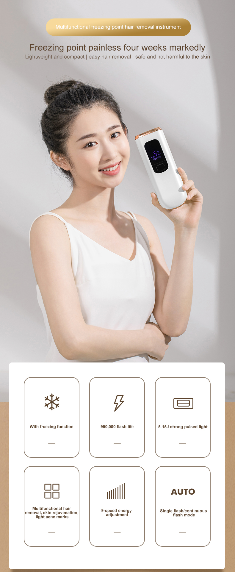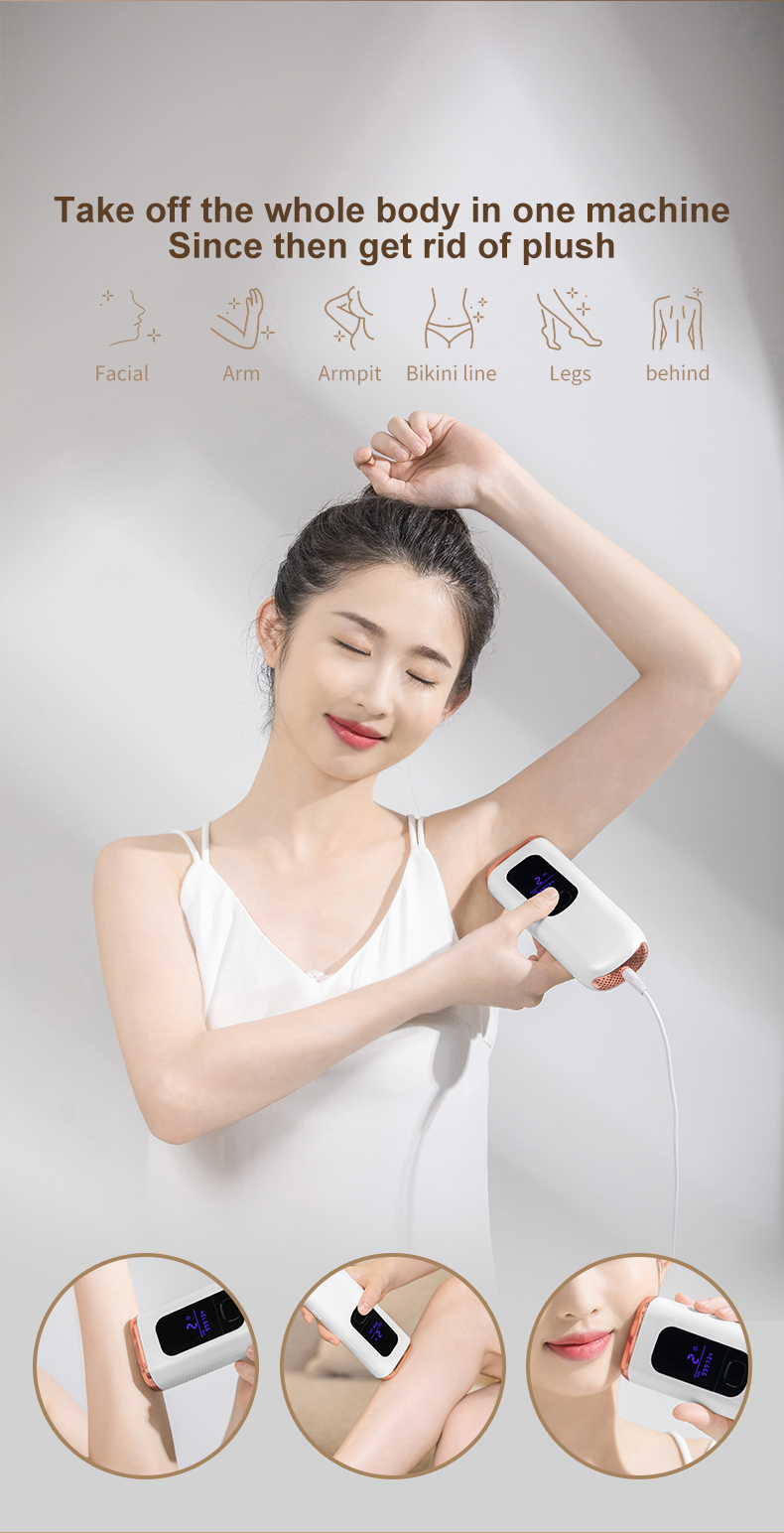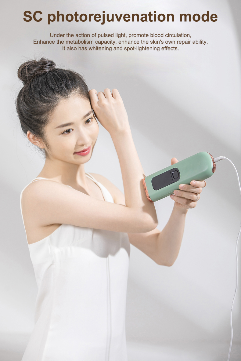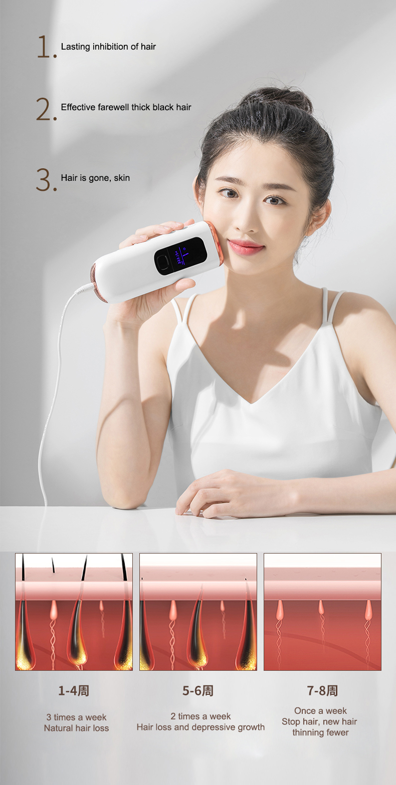 (Huomautus: 1, Ei sovellu tatuoidulle ja yliruskettuneelle iholle, haavoimille eikä raskaana oleville. 2, Se on pistokelaite, pidä laite aina kytkettynä virtalähteeseen hoidon aikana.)