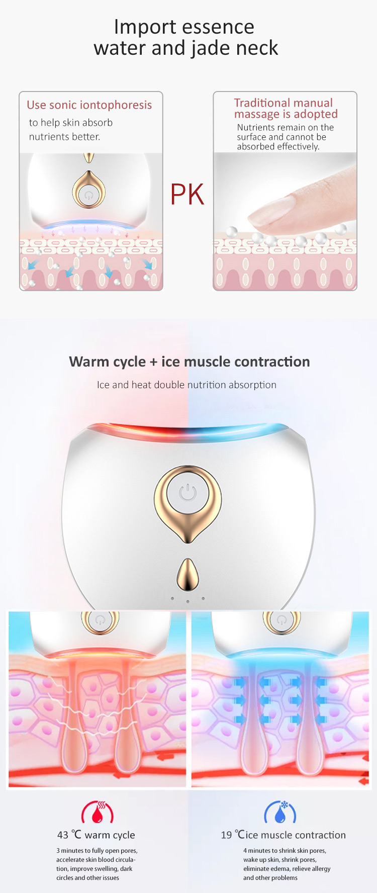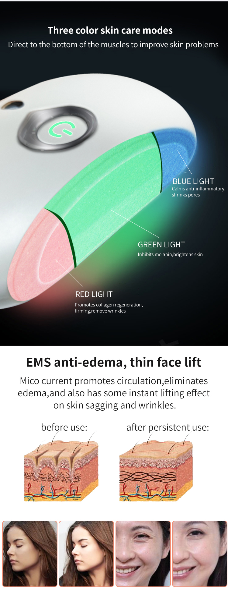 6. Kompakti koko, kätevä kuljettaa ja käyttää milloin tahansa, helppokäyttöinen korkeataajuinen tärinä + mikrovirta, mikrovirta aktivoi solut ja palauttaa ihon kimmoisuuden
