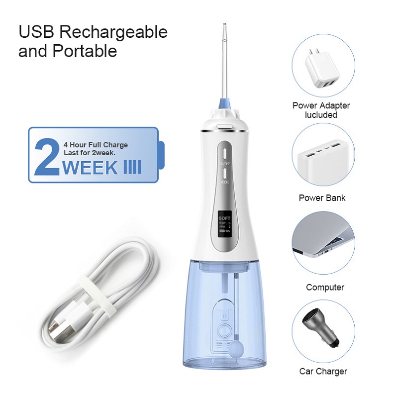 Tämän vesihammaslangan pariston kesto on kaksinkertainen muihin verrattuna tehokkaan ympäristöystävällisen akun ansiosta. Lataa vain 3 tuntia ja nauti 30 päivän käytöstä. Se on kompakti ja kevyt, täydellinen koti- ja matkakäyttöön. Tämän vesihammastikun mukana tulee USB-kaapeli (sovitin ei sisälly), joten se on ihanteellinen matkapakkaus. Hyödynnä poikkeuksellisen pitkä 30 päivän akunkesto, joten se on todella kannettava ratkaisu.