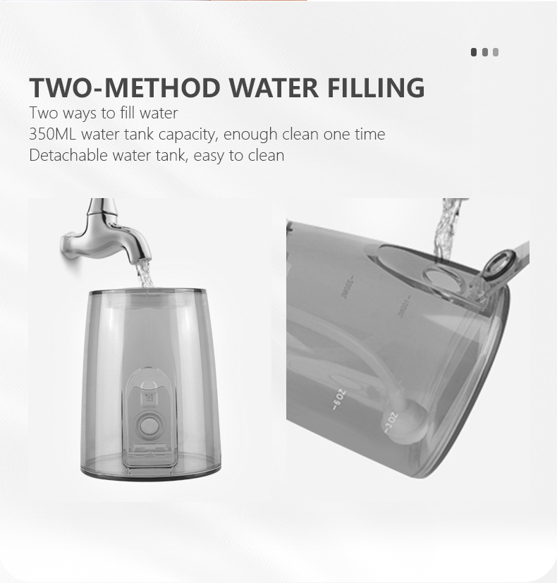 Tässä vesihammaslangassa on paranneltu 350 ml:n vesisäiliö, joka on kaksinkertainen muihin vanhoihin malleihin verrattuna, mikä eliminoi toistuvan täyttötarpeen ja tekee suun puhdistamisesta mukavampaa ja tehokkaampaa.