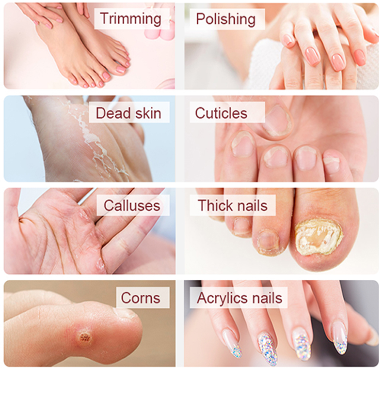 - AMMATTILAINEN KÄSIEN- JA JALKOJEN KYNSENHOITO: Tehosta kynsienhoitorutiiniasi salongilaatuisilla tuloksilla mukavasti kotonasi. Ammattimainen manikyyri- ja pedikyyrisarjamme tarjoaa kaikki työkalut kynsien muotoiluun, viilaamiseen ja kiillottamiseen, kynsinauhojen ja kovettumien poistamiseen, ja sitä voidaan käyttää myös sisäänkasvaneiden kynsien hoitoon.