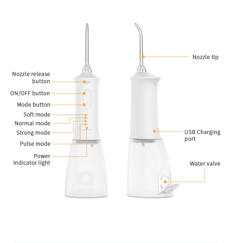 Tuotteen nimi: USB-ladattu kannettava suuhuuhtelulaite ladattava vesisuihkulanka vedenpitävä Ipx7 hammaslanka